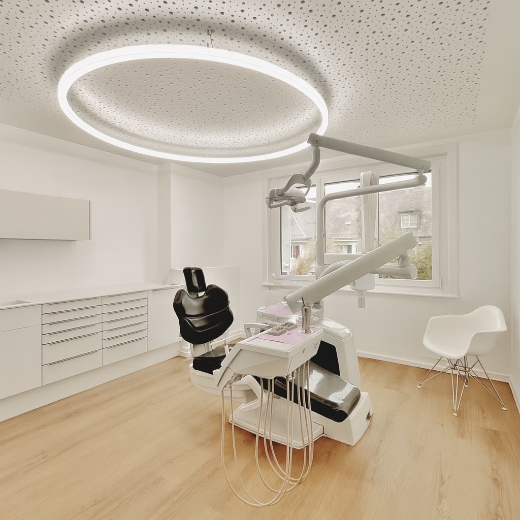Anfang des Jahres bekamen wir die Aufgabe, eine gewachsene Zahnarztpraxis räumlich zu erweitern und architektonisch neu zu fassen. Von der Baueingabe bis zur Fertigstellung begleiteten wir das Projekt in allen Phasen. In enger Abstimmung mit der Bauherrschaft entstand eine Erweiterung, die bestehende Strukturen respektvoll aufnimmt und zugleich neue Qualitäten schafft. Ein zurückhaltendes Farbkonzept, klare räumliche Verbindungen und die Vergrösserung der Praxis formen ein stimmiges Ganzes, das Funktionalität und Wohlbefinden vereint und die vertraute Atmosphäre in zeitgemässer Frische weiterführt.